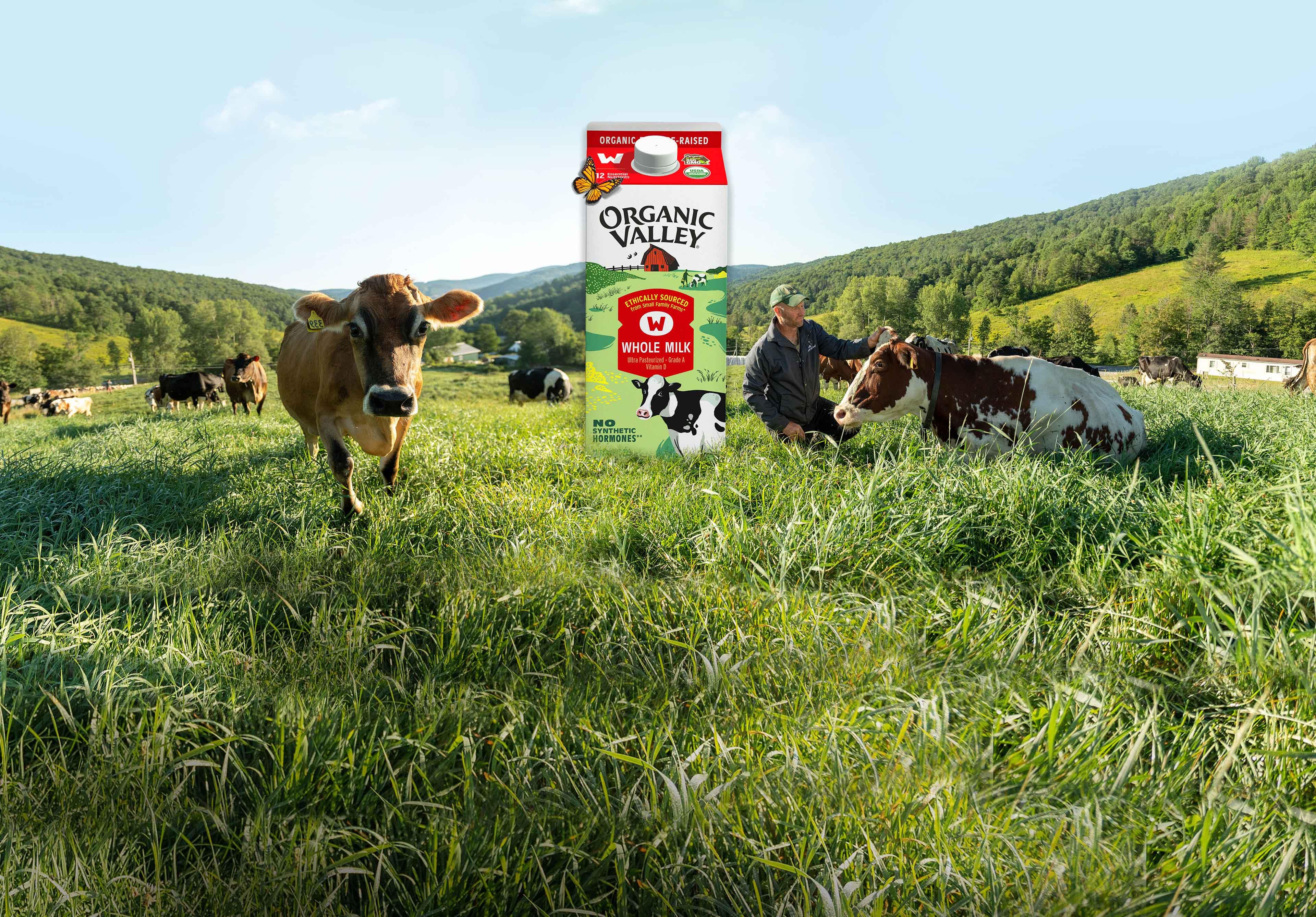Organic Valley farmers understand the importance of getting the cows out of the barn and onto pasture — plots of land for grazing. It’s good for animals and the earth! Cows benefit from spending their days munching away on nutritious greens and well-managed pasture eliminates the need for tilling the ground. All this green goodness pulls carbon from the atmosphere and stores it in the soil. The more grassy pastures there are, the less CO2 in the environment! Pasture also provides habitat for insects, birds and plants. Organic dairy, done right, is part of the climate solution and not the climate crisis.